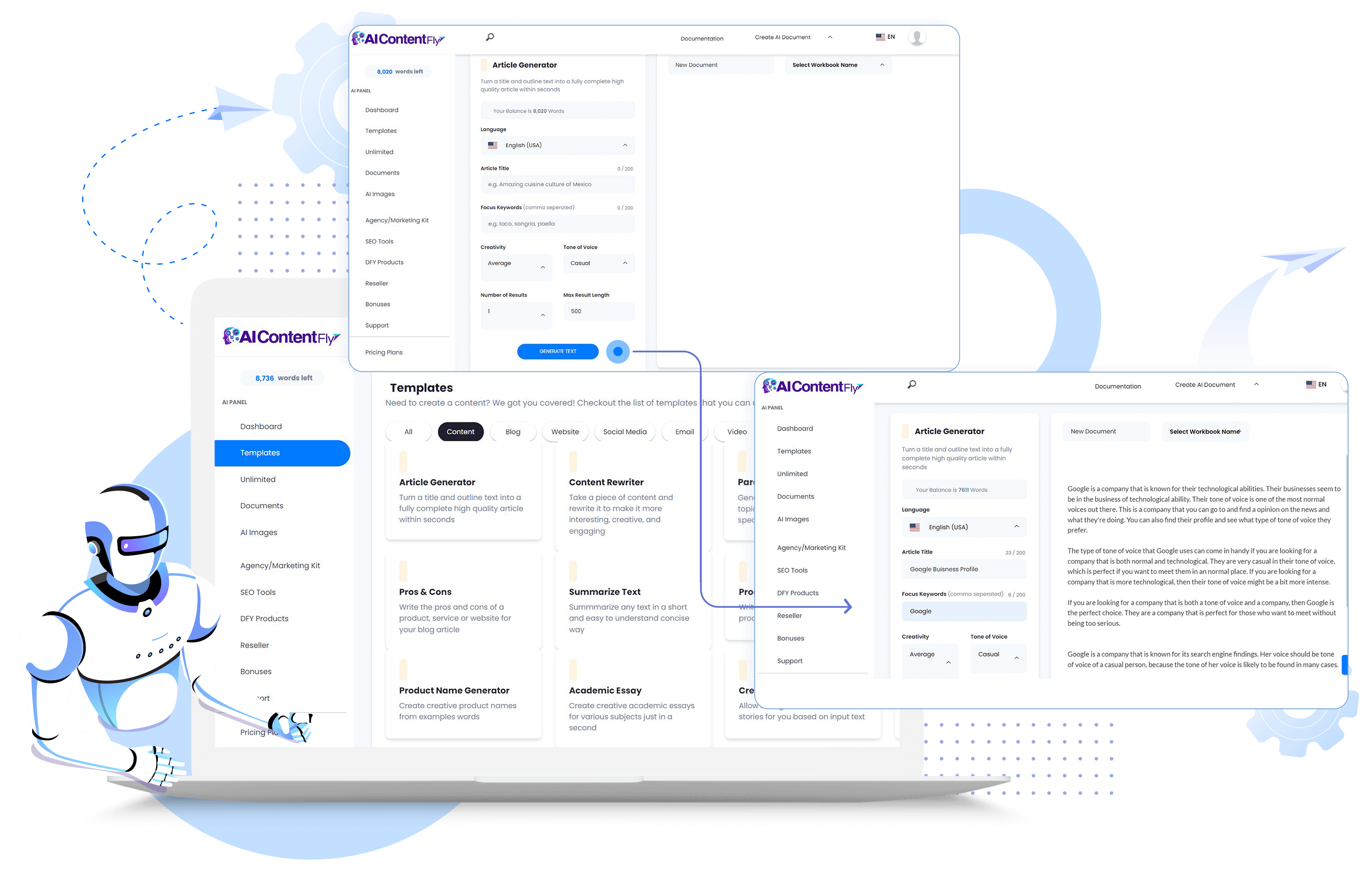 AIContentFly is an all-in-one AI-powered content creation platform with 39 writing tools inside the app - the only tool you'll ever need for creating stunning content!