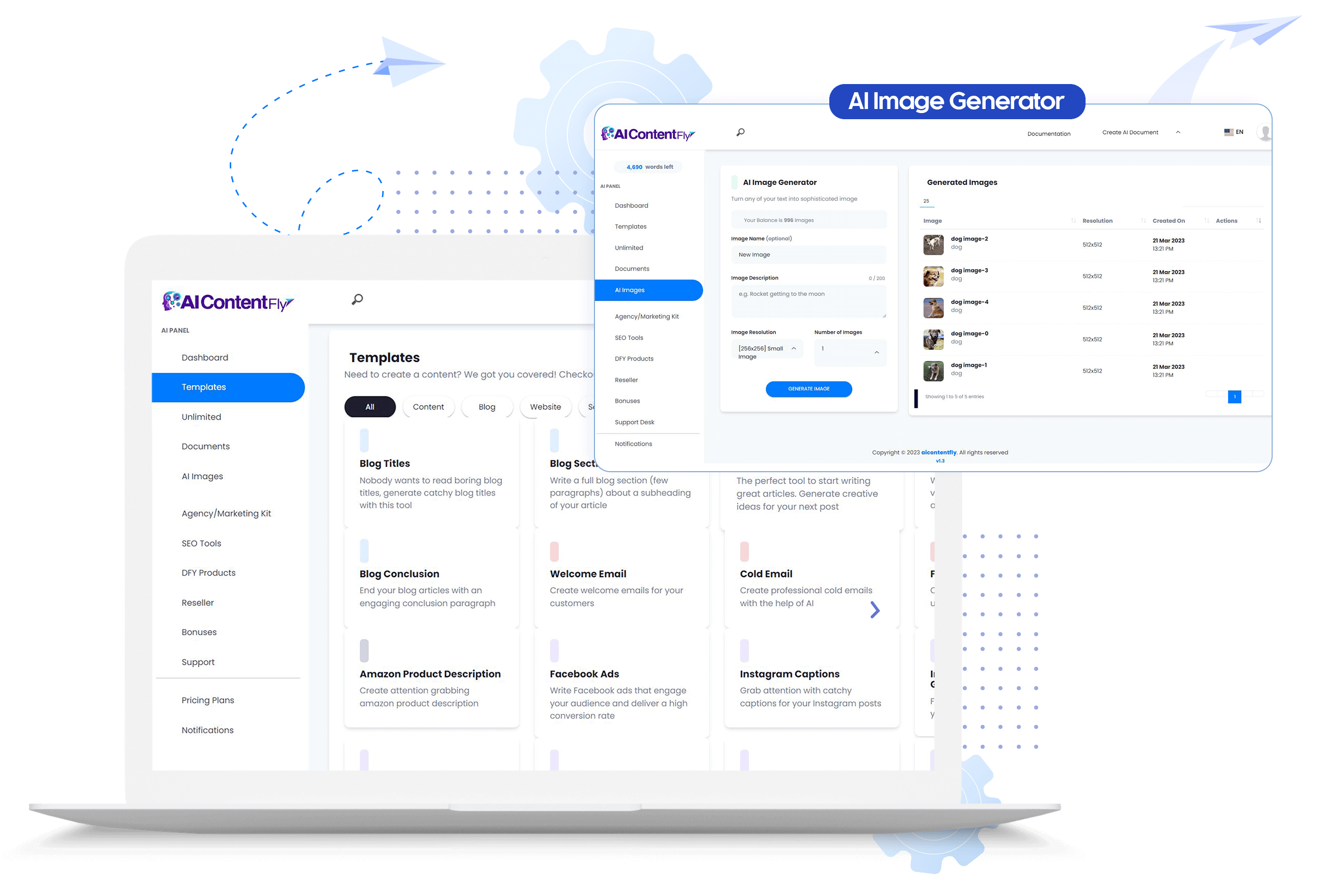 After generating your content, you can instantly download it as a DOC, PDF, TXT file, or copy it to the clipboard. We're also including cloud storage for you, so you can also choose to SAVE it to your documents folder within the dashboard. Then you can access your documents and images anytime!
